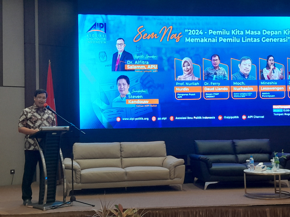 Seminar ini mengangkat topik ‘Pemilu Kita Masa Depan Kita, dengan sub tema; Memaknai Pemilu Lintas Generasi dengan dihadiri Ketua Umum AIPI, Alfitra Salamm, pemateri dari pemateri, akademisi, penyelenggara pemilu dan mahasiswa.