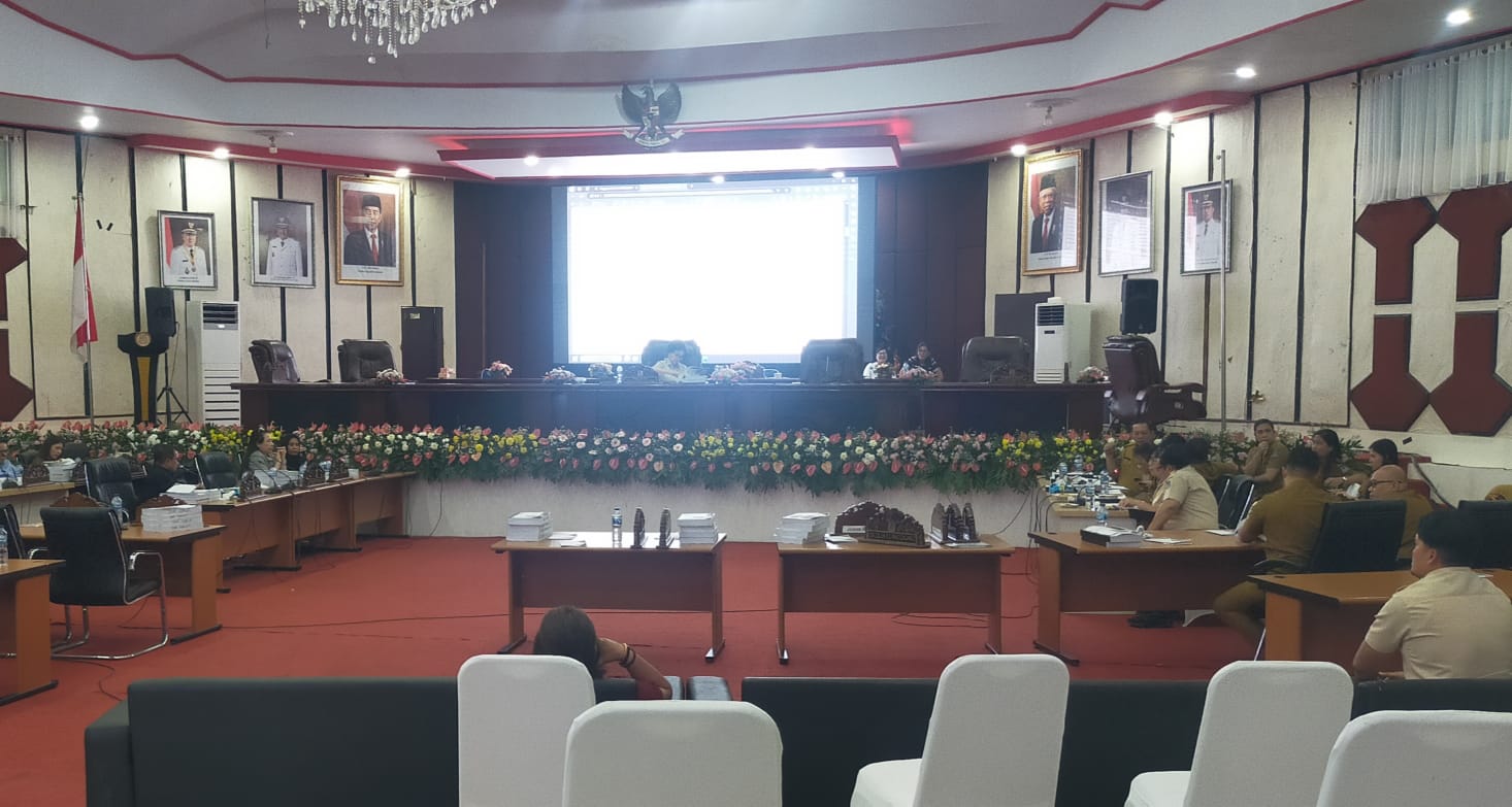 Kabar-online, Manado- Tim Anggaran Pemerintah Kota Manado (TAPD) Pemerintah Kota (Pemkot) Manado dalam pembahasan Ranperda Pertanggungjawaban APBD dan Ranperwal penjabaran pertanggungjawaban APBD 2023 bersama Badan Anggaran (Banggar) DPRD Kota Manado di ruang Rapat Paripurna kantor Dewan Kota Manado, Senin (10/6/2024).