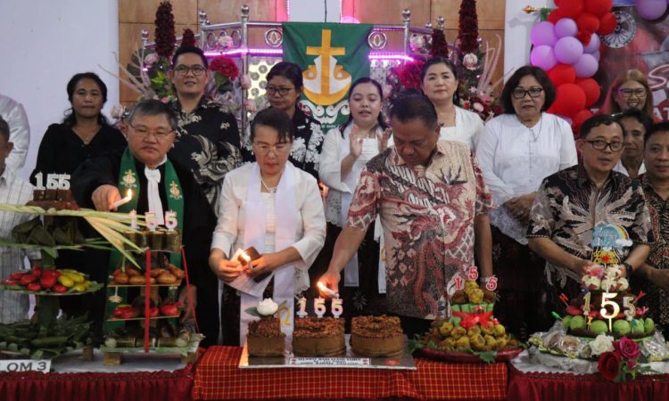 Kabar-online, Sulawesi Utara- Gubernur Provinsi Sulut Prof DR (Hc) Olly Dondokambey menghadiri Ibadah Syukur Perayaan HUT ke-155 Jemaat GMIM Karmel Paslaten, Kota Tomohon, Sabtu (11/11/2023).
