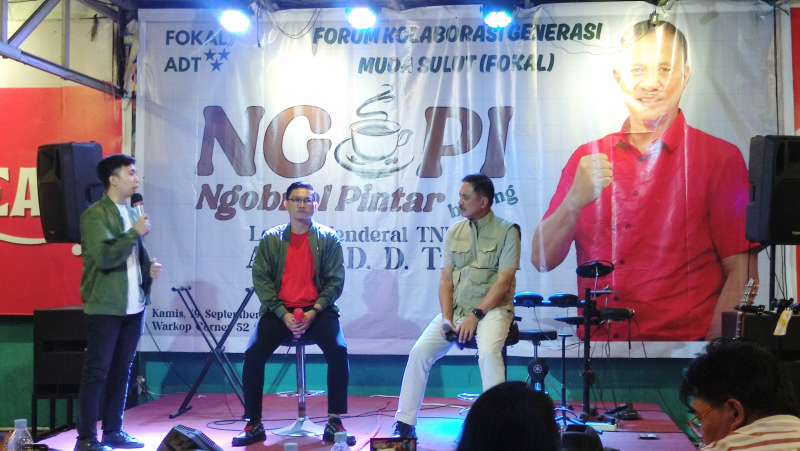 Kabar-online, Manado- Forum Kolaborasi Generasi Muda Sulut (Fokal) memprakarsai kegiatan Ngopi (Ngobrol Pintar) Bareng Letnan Jenderal (Letjen) TNI ( Purn) Alfred Denny D Tuejeh (ADT), bertempat di Warung Kopi Corner 52 Sario, Manado, pada Kamis (19/9/2024).