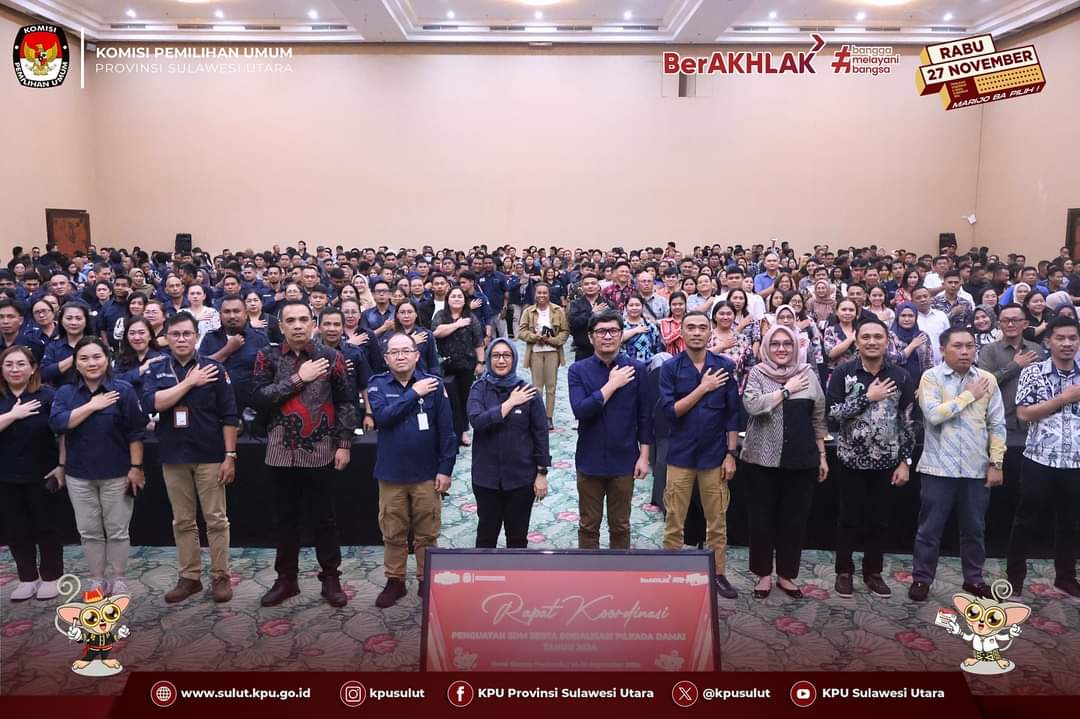 Kabar-online, Manado- KPU Sulut menggelar Rapat Koordinasi Penguatan SDM serta Sosialisasi Pilkada Damai Tahun 2024, bertempat di Hotel Sintesa Peninsula Manado mulai 24 sampai 26 September.