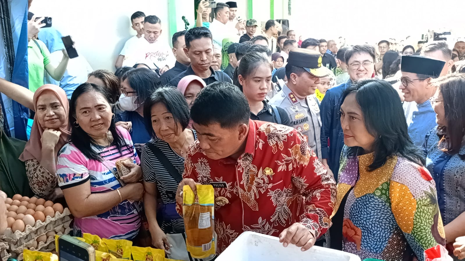 Gubernur tampak berbaur dengan warga sambil memantau bahan – bahan pokok yang dijual.