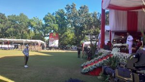 Gubernur Sulut, Mayjen TNI (Purn) Yulius Selvanus SE tampak gagah, tampil sebagai Inspektur Upacara yang digelar di halaman kantor Gubernur, Minggu (17/8/2025).