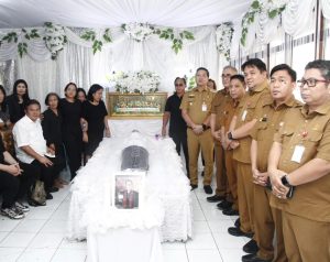 Wagub bersama jajaran Pemprov Sulut mengambil kesempatan melayat ke rumah duka sebagai bentuk penghormatan kepada Wakil Ketua Bidang Ajaran dan Tata Gereja BPMS GMIM tersebut.