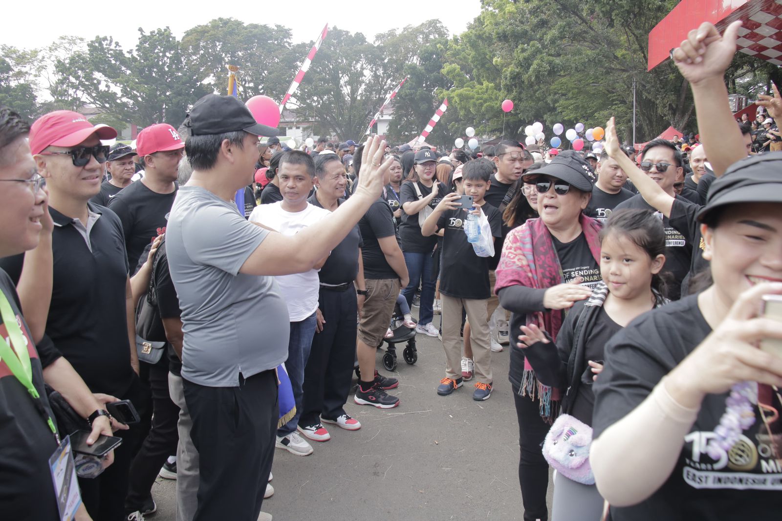 Dia sekaligus melepas sekaligus memberi semangat peserta jalan sehat yang mengambil start dari lapangan KONI Sario Manado.