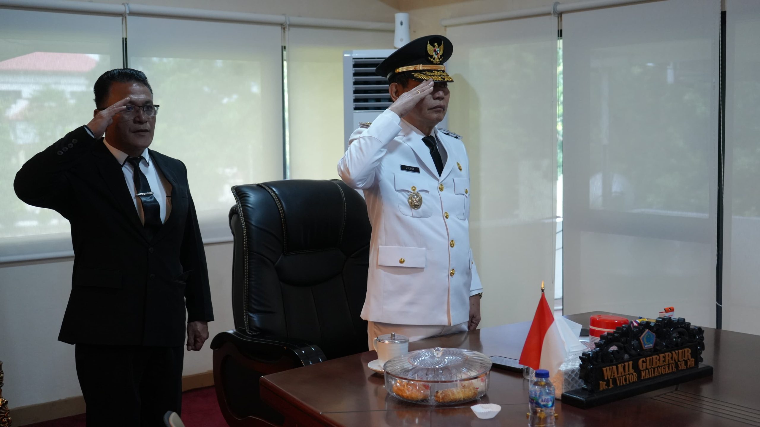 Kabar-online, Manado- Wakil Gubernur Sulawesi Utara, Dr Victor Mailangkay SH MH, mengikuti upacara Peringatan Hari Otonomi Daerah ke XXIX Tahun 2025 secara virtual, Jumat (25/4/2025) dari ruang kerjanya.